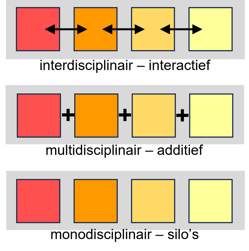 Figuur 5: Illustratie van mono-, multi- in interdisciplinair werk