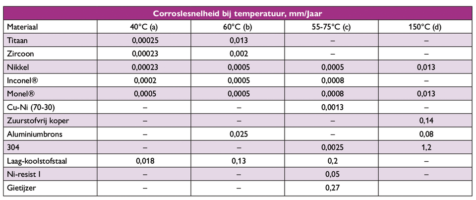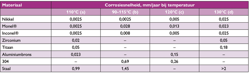 Tabel 3. Corrosie van metalen en legeringen in 50% NaOH bij verschillende temperaturen.