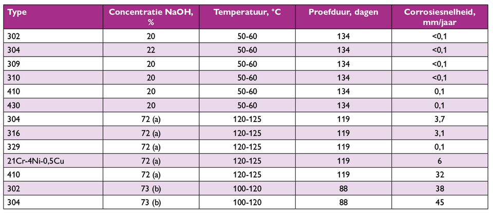 Tabel 7. Corrosie van roestvast staal in NaOH-oplossingen.