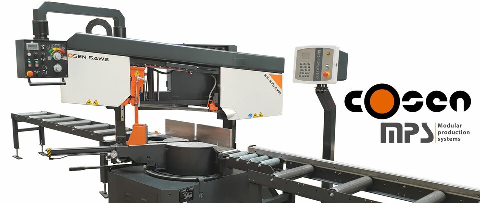 Afbeeldingen SH-510LDM met MPS en Cosen logo en de G320 bandzaagautomaat