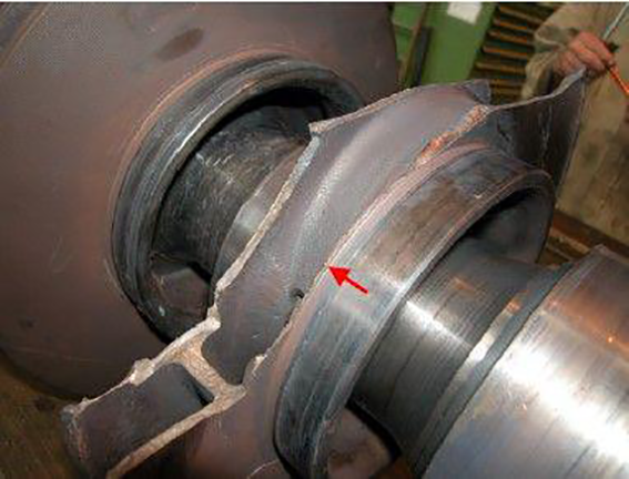- De breuk ontstond in een herstelde waaier (13Cr4Ni) – juist op de plek van een lasreparatie.