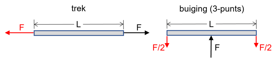 Figuur 8: staaf op trek (links) en buigende balk (rechts), met actie en reactie(s)