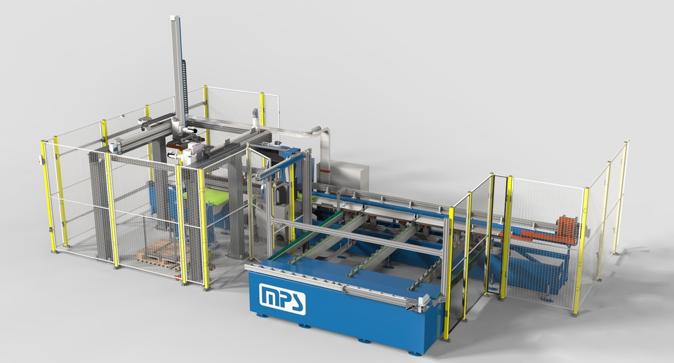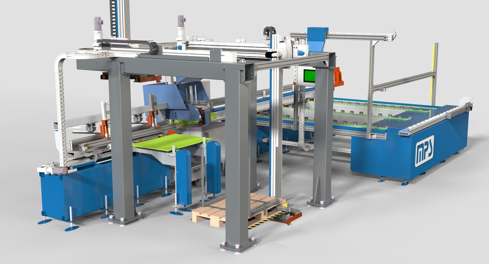 Dit is een uitbreiding van het MPS leveringsprogramma om te voldoen aan de almaar groter wordende automatiseringsvraag van klanten. Bij deze installatie worden aluminium of kunststof profielen gelegd in het aanvoermagazijn. Het positioneersysteem brengt het profiel exact boven de zaagpositie. Na het zaagproces worden de producten gescheiden in kopse kanten, producten en reststukken. Dat gebeurt met een uitkantelsysteem en transportband. Het gereed product wordt vervolgens laag voor laag in transportrekken op een pallet geplaatst.