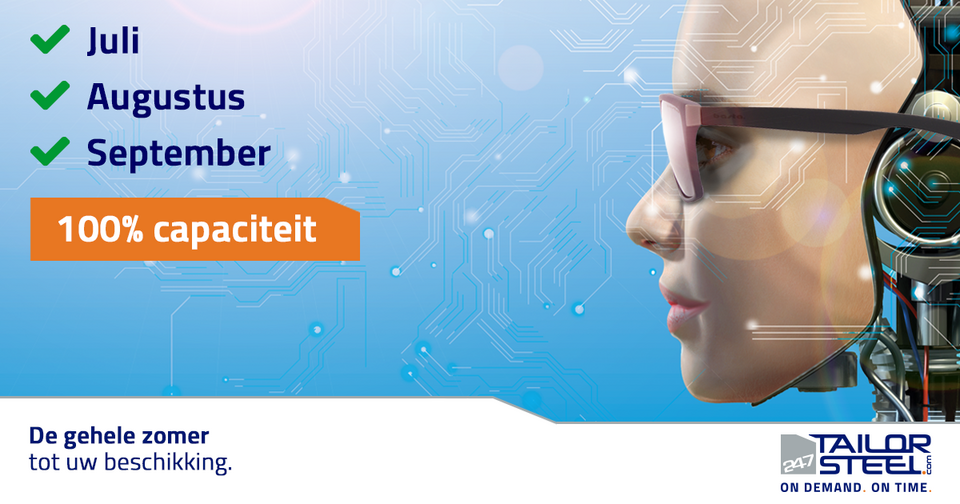 Onze belofte: 24 uur per dag, 7 dagen in de week, het hele jaar door lasersnijden, buislasersnijden en kanten. Daar houdt zich 247TailorSteel ook deze zomer aan. Er staan 33 lasersnijmachines, 18 kantbanken en 5 buislasers volledig bemand voor u klaar. Alle bestellingen worden met dezelfde snelheid verwerkt zoals u gewend bent en op het door u gewenste moment geleverd. Wel zo duidelijk, want zo loopt uw planning gewoon door. En handig voor spoedjes die écht niet kunnen wachten tot na de zomer. Kortom, zet Sophia® de komende maanden gerust aan het werk. Ze is er klaar voor!