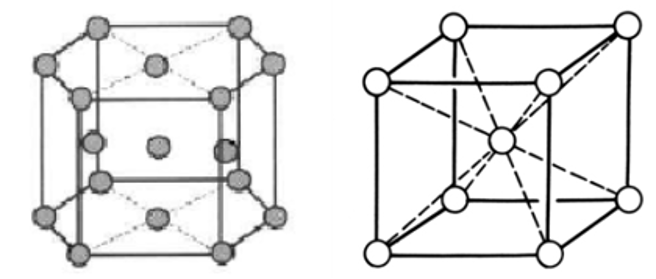 Afbeelding 1: een hexagonale en kubisch ruimtelijk gecentreerd rooster.