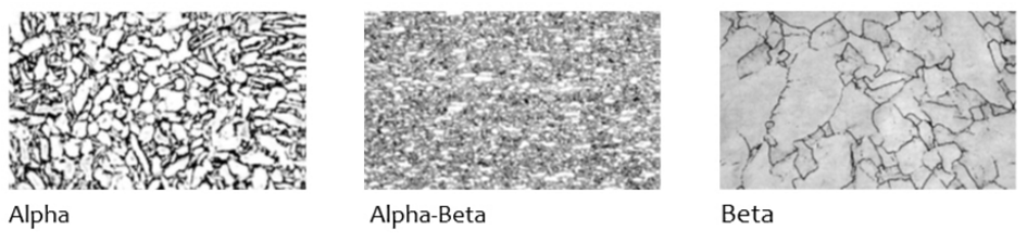 Titaan is verkrijgbaar in verschillende kristalstructuren. De meest voorkomende kristalstructuur is de alfakwaliteit, die in het geval van zuiver titaan bij 880 graden Celsius omslaat in een bètastructuur. De verschillende typen titaan kunnen onderverdeeld worden in commercieel zuivere kwaliteiten die een alfastructuur bezitten en gelegeerde typen die veelal over een alfa + bèta kristalstructuur beschikken. Ook zijn er titaanlegeringen die uitsluitend uit een bèta kristalstructuur zijn opgebouwd.  Een alfastructuur heeft een zogenaamd hexagonaal kristalrooster. Dat kan voorgesteld worden als een ruimtelijke honingraatvorm waar atomen op de hoeken zitten van deze zeskantige vorm alsmede middenin de horizontale vlakken. Een bètastructuur daarentegen heeft een kubisch ruimtelijk gecentreerd kristalrooster, waar de atomen op de hoeken van de kubus gepositioneerd zijn en een atoom in het midden hiervan. Op afbeelding 1 is dat schematisch weergegeven. De palladium gelegeerde kwaliteiten zijn in principe altijd alfalegeringen terwijl typen met hoge sterktes meestal altijd kwaliteiten zijn, die over een alfa + bètastructuur beschikken. Ook bestaan er titaan typen die geschikt zijn voor smeden en gieten. De medische sector gebruikt bij voorkeur een type met hoge sterkte die voldoet aan de uitdrukking ELI. ELI staat voor ‘Extra Low Interstitials’ en dat houdt een kwaliteit in met zeer lage verontreinigingen. Op afbeelding 2 zijn metallografische opnamen weergegeven van de hierboven genoemde kristalconfiguraties.