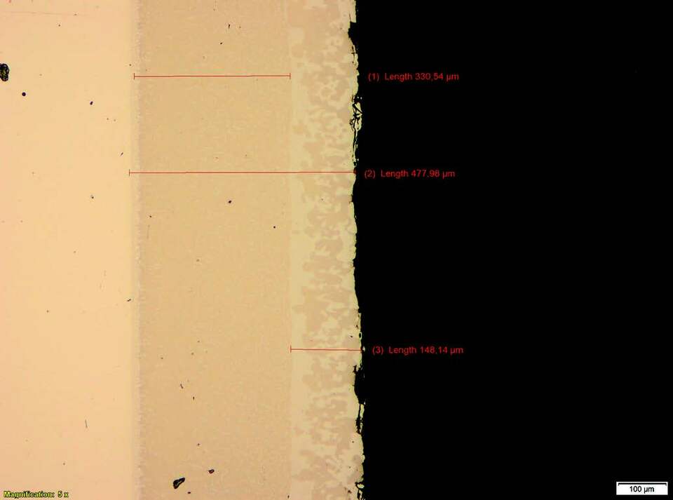 Hieronder is een afbeelding te zien van een typische aluminiseer-laag.