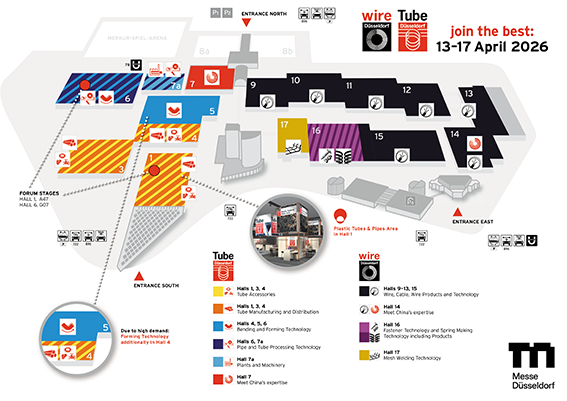 wire & Tube wordt georganiseerd sinds 1986. In die 40 jaar zijn deze beurzen uitgegroeid tot het grootste internationale platform voor de draad- en buizenindustrie. 2024 was een succesvol jaar, met meer dan 2.600 exposanten uit ruim 60 landen op circa 120.000 vierkante meter expositieruimte. Dit jaar zijn de verwachtingen net zo hoog. Beide beurzen presenteren zich als een dynamisch, wereldwijd centrum voor industriële technologieën van de toekomst. Van Europa tot Noord- en Zuid-Amerika, Azië en Afrika: de wereld komt naar Düsseldorf, want hier wordt de industriële toekomst vormgegeven! ‘Düsseldorf is wereldwijd de belangrijkste beurslocatie voor onze industrieën. Hier beleven innovaties hun internationale debuut’, aldus Daniel Ryfisch, directeur wire, Tube & Flow Technologies bij Messe Düsseldorf, die de sterke positie van de twee industriereuzen toelicht. wire & Tube tonen technologische diversiteit op het hoogste niveau. De twee beurzen hebben het volledige spectrum van moderne productietechnologieën – van machines en systemen voor de productie van draad, kabel en buis – tot nieuwe materialen, technologieën en innovatieve eindproducten onder hun dak. De focus ligt op roestvast staal en speciale materialen, waterstoftechnologieën, kunststof buizen, scheidings- en snijtechnologieën, e-mobiliteit, glasvezeltechnologie, bevestigings- en verbindingstechnologie, verenproductie, gaaslasmachines en de première van World of Cables, waar het eindproduct kabel in een speciale ruimte in hal 13 wordt getoond.
